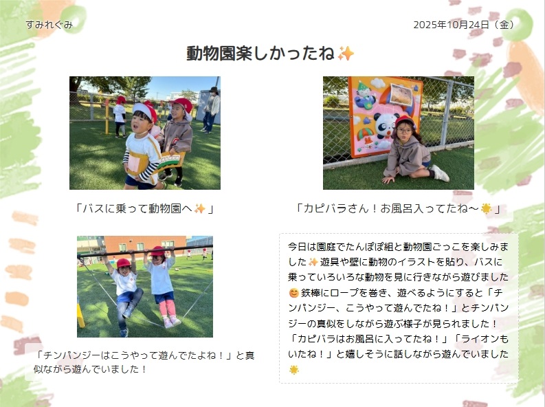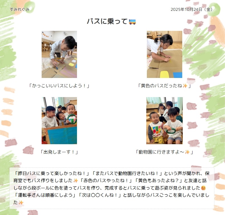 すみれ組の子ども達のようす(親子バス遠足後の遠足ごっこ)