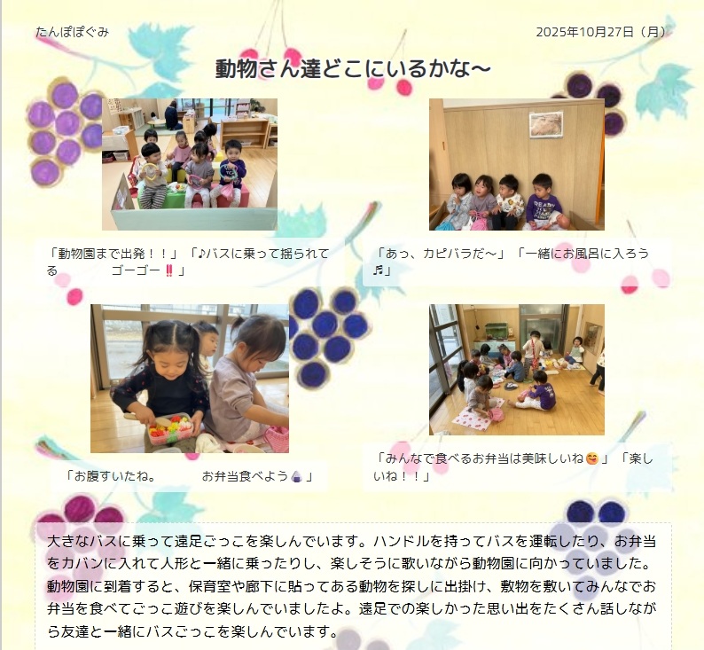 たんぽぽ組の子ども達のようす(親子バス遠足後の遠足ごっこ)