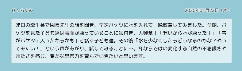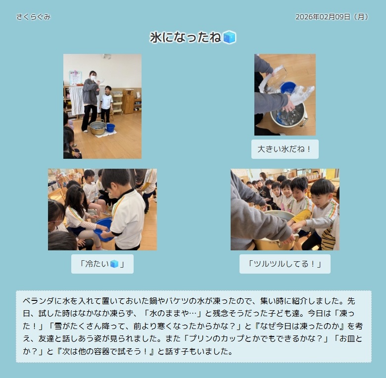さくらぐみの子ども達のようす(氷つくり)
