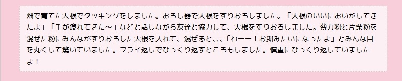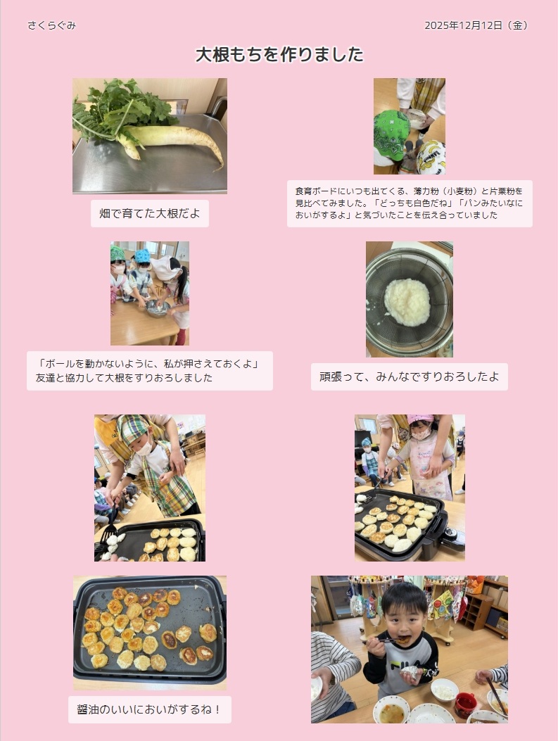 さくら組の子ども達のようす(大根もち作り)