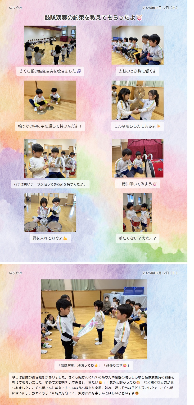 鼓隊の引継ぎ(さくら組からゆり組へ)