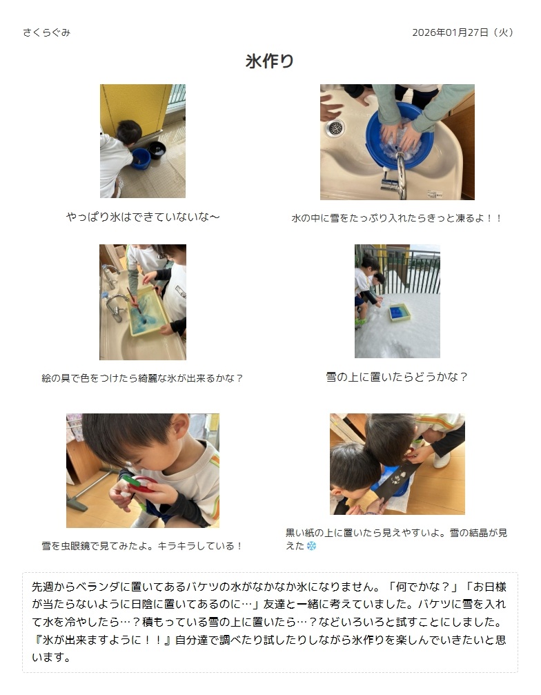 さくらぐみの子ども達のようす(氷つくり)