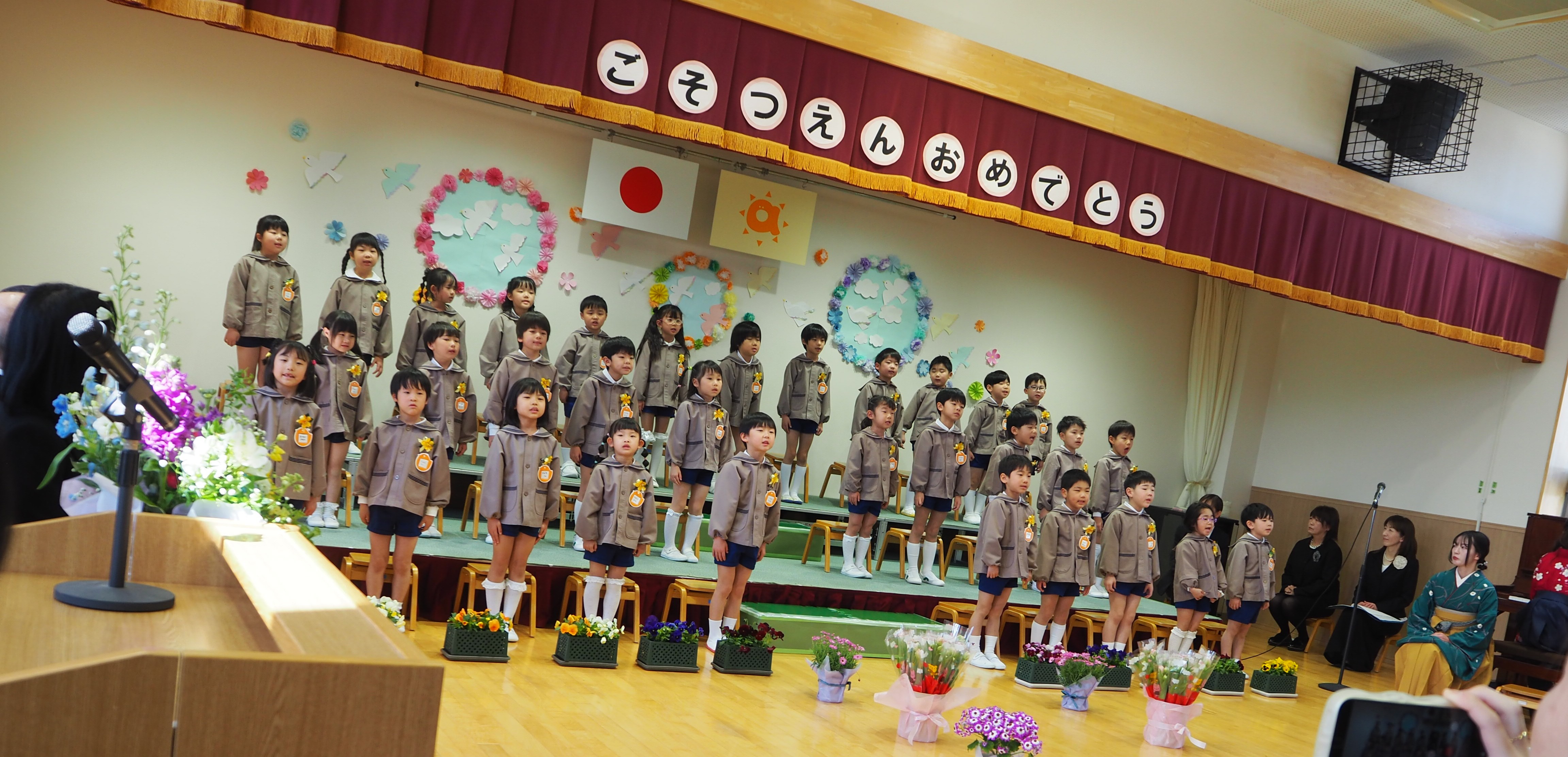 令和7年度あさひこども園の卒園式を行いました。5歳児さくら組32名の子ども達が園を巣立ち、4月から小学1年生として新たな1歩を歩み出します。たくさんの来賓の方々、保護者の方々に見守られ少し緊張した様子も見られましたが、元気よく「はい」と返事する姿 、立派に式に参加する姿に成長を感じました。保護者の方々のご理解とご協力のもと、子ども達の門出をお祝いする素敵な卒園式を行うことがきました。ありがとうございました。さくらぐみさん、ご卒園おめでとうございます。小学校に行っても頑張ってね。